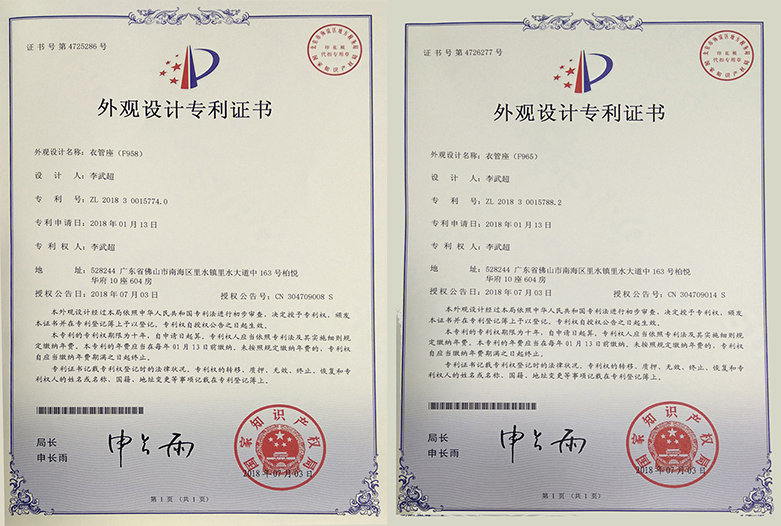 外观设计专利证书F958F965