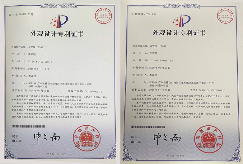 外观设计专利证书F952F953